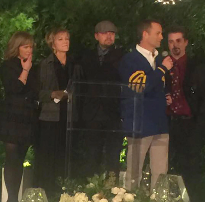 "Alan Thicke's life-celebration at his beautiful ranch-home in Santa Barbara last night was a personal tribute from friends and family to one of America's favorite dads," Cameron wrote on Facebook, along with a photo of himself standing on a platform alongside all of his former cast members. " Here's all the cast of Growing Pains (including Ashley Johnson (Chrissy Seaver) and Leonardo DiCaprio (homeless teen taken in by the Seavers) sharing stories and memories of Alan, laughter and lots of love, grateful to be together with our special writers and producers, and to be with Alan's whole family."