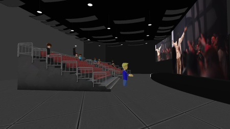 I quickly made my way to the auditorium and found close to 10 or so people listening to the church’s worship service streaming on cinema-like screens. I observed for a while before taking a few virtual photos and heading to my seat. Other avatars — the virtual representations of real people — moved in and out of the auditorium.