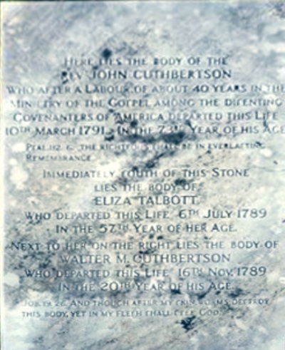 Cuthbertson was a key figure in American Presbyterianism, having helped found the first Reformed Presbytery in America and traveling around 70,000 miles to perform baptisms and weddings on the frontier.