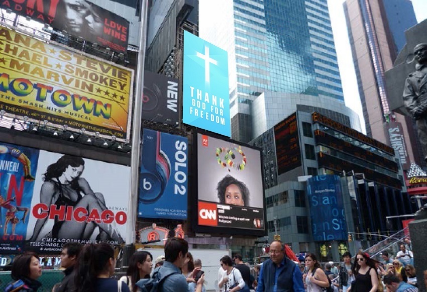 Watch the 15-second digital video board to be displayed in New York, featuring the Cross and the message of religious liberty in America, below.