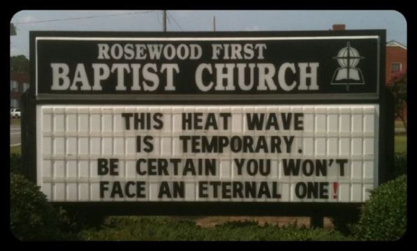 So, on Fridays for the last couple of months, Stetzer has posted funny, unusual, and sometimes controversial photos of church marquee signs in the United States that his tweeps (friends on Twitter) have shared with him.
