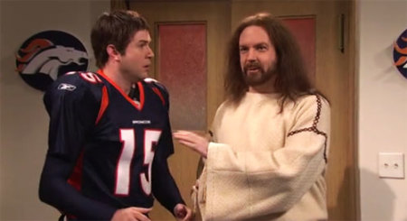 "Here's the thing, okay. If we're going to keep doing this, you guys gotta meet me halfway out there. I mean, let's face it, it's not a good week if every week I, the Son of God, have to come in, drop everything, and bail out the Denver Broncos in the fourth quarter, okay. I'm a busy guy," the Jesus character says on the show.