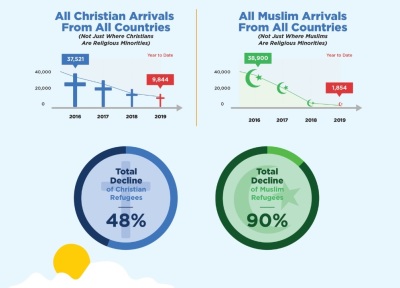 “Furthermore, the dramatic decrease in the numbers of persecuted Christian and other religious minority refugees resettled in the U.S. to escape religious persecution contradicts the administration’s previously stated willingness to help these populations.”
