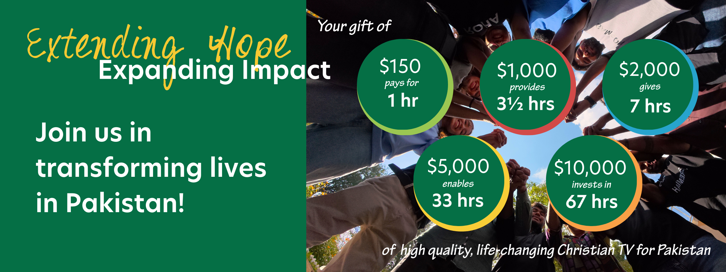 Just $150 provides one hour of high-quality Christian television—created by Pakistanis, in Pakistan, for Pakistan.